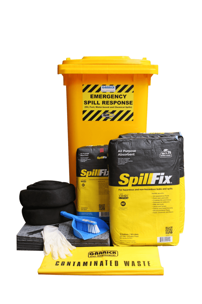 • Kit in “wheelie bin” storage so that they can be taken quickly and easily to the spill.